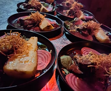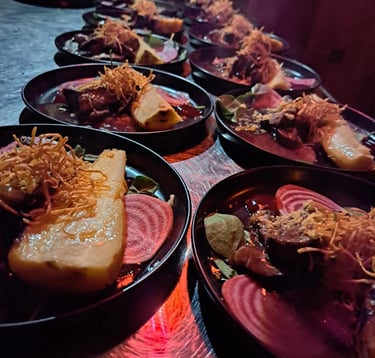 De har skapat ett helt unikt ställe hemma i sin trädgård, där maten lagas över öppen eld. Du bokar in dig, vet inte vad du ska få, och du vet inte heller vem du hamnar bredvid. Du bara sitter där, njuter och – ja, håller käft och äter. 😂🔥