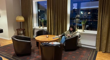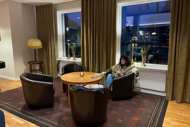 Vi möttes upp och fick ett par riktigt goa dagar tillsammans. Bland annat åt vi en fantastisk middag på Lundsbrunn Spa – herregud så gott! Jag hann dessutom spela shuffleboard med Patric… och hör jag vann! Det hade han inte räknat med, den gode Patric. Men ibland har man flyt – även utan tålamod. Efter middagen stod vi kvar på ställplatsen medan Patric tog in på hotellet. Vi hade möte dagen efter, så det passade perfekt.