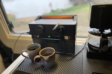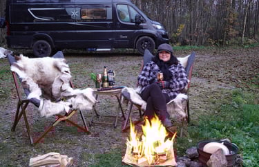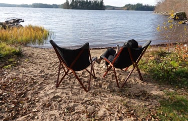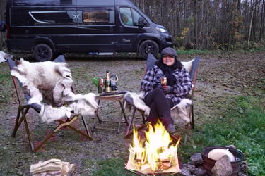 Luften blev rå av vattnet, så vi ökade på med all ved vi hade – till och med eldnätet åkte fram, så vi hade två eldstäder igång samtidigt. Det kallar jag campinglyx. När mörkret la sig packade vi ihop det som kunde ta skada av regn och gick in i Blackie. Där satt vi länge och pratade om framtiden. För du vet ju – planerna på vår långresa söderut börjar ta form på riktigt nu. Jag var till och med inne och skulle boka Stena Line-biljetterna, men ja, det fanns några omständigheter som stoppade mig i sista sekunden. Jag berättar mer om det framöver. Och du – vi har ju köpt något väldigt roligt också. Något som väntar på oss. Men det tar vi en annan gång.