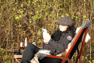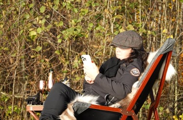 Plötsligt kom en man gående. Det visade sig vara Rolf, 82 år, ägaren till platsen. Han hade sett att någon bokat det sista datumet för säsongen och var nyfiken på vilka som vågat sig ut i november. Och vilken härlig gubbe! Han hade massor att berätta om platsen, historien och planerna framåt. Vi blev stående där länge – sådär länge att man glömmer tid och rum. När han till slut vinkade hejdå hade tiden bara flugit iväg, och våra egna planer fick vänta lite. Men vi gillar sånt där. Möten med människor som Rolf är ju halva grejen med hela det här livet.