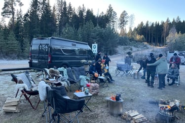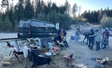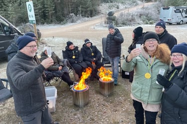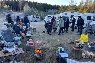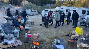 Vi drog till Gräne Gruva också, och det blev ett dygn fullt av skratt, minusgrader, eld och härliga husbilsmänniskor. Det är något speciellt när man sitter runt en eld och pratar med människor man aldrig träffat tidigare men som plötsligt känns som gamla bekanta. Tips och tricks kastas mellan borden, skratt ekar mellan bergväggarna, och kinderna får jobba.