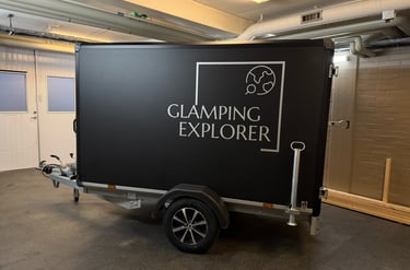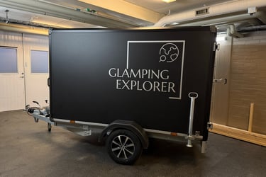 Efter en liten period av väntan – där jag nästan gick runt som en tupp och låtsades vara lugn – så rullade det äntligen in på gårdsplanen. När vi sedan fick in det på stripning blev vi sådär barnsligt lyckliga. Det är egentligen otroligt hur glad man kan bli av ett släp, men när man ser det stå där med sin GlampingExplorer-look… jösses. Det känns som en ny familjemedlem.