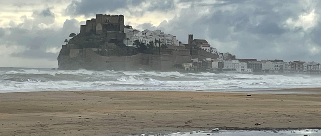 Vi har varit i Peñíscola i två dagar nu, och herregud vad det har regnat. Alltså inte lite regn, utan konstant. Sådant där regn som bara fortsätter och fortsätter. Jeanette har faktiskt inte satt sin fot utanför Blackie på två dygn… hahaha. Hon har haft fullt upp där inne istället, gjort filmer som kommer dyka upp på YouTube längre fram. Själv kände jag igår att jag behövde ta mig ut en sväng. Framför allt för att köpa färskt bröd. Det är ju ändå mitt ansvar. Så på med varma, regntäta kläder och iväg bar det.