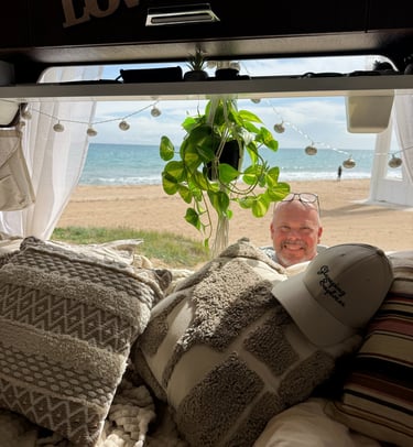 Jag sitter ofta i soffan och Jeanette sitter i förarstolen. Där sitter vi och pratar, skrattar och smider planer om vart vi ska köra nästa dag eller vad vi ska göra när vi kommer hem.
