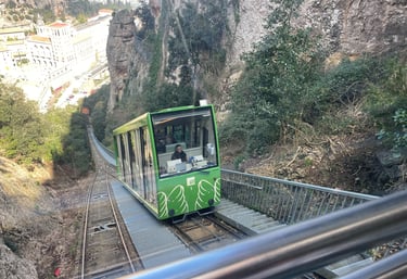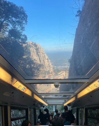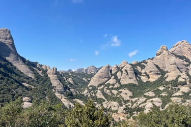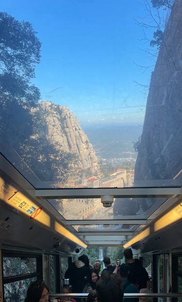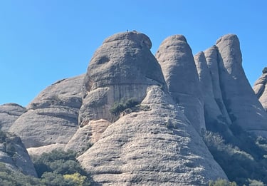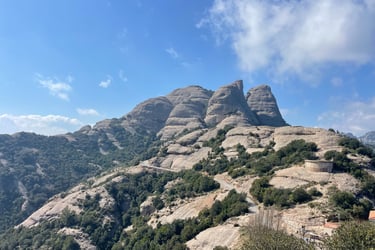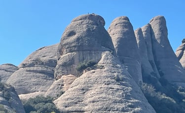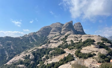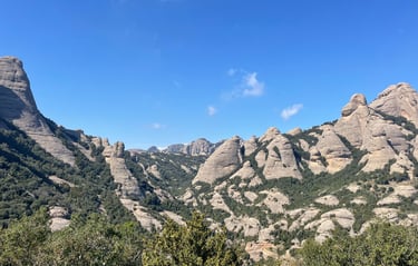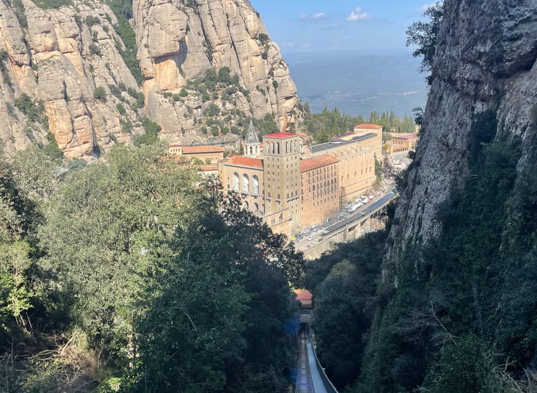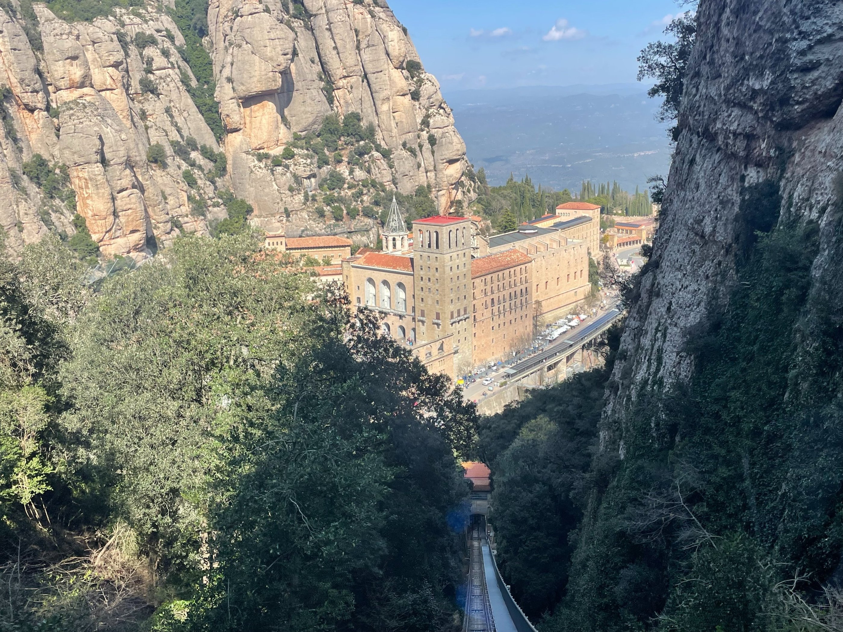 Montserrat är alltså inte bara ett berg, utan en hel bergskedja som reser sig upp som något nästan overkligt ur landskapet. Klostret ligger på ungefär 700 meters höjd, och de högsta topparna når över 1 200 meter. Och det känns kan jag säga.