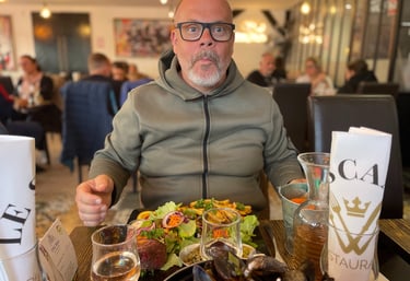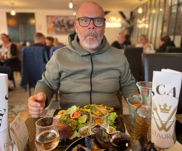 Jeanette tog musslor och jag tog en råbiff. Och som alltid – vi delar. Smakar av varandras. För vi gillar ju båda delarna. Det är något speciellt med de där måltiderna man längtat efter länge. När man väl sitter där så släpper man allt annat.