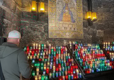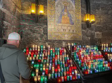 Vi gick även in i kyrkan. Och där gjorde jag det som blivit en grej för mig. Jag köpte två ljus. Ett för mamma och ett för pappa.